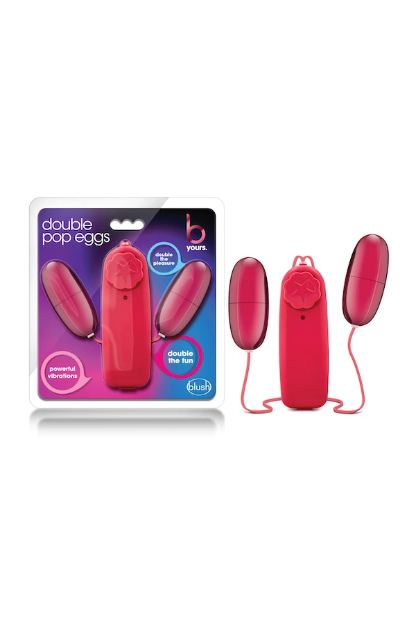 2 Smooth plastic vibrating eggs attached by thin cord to adjustable speed controller.