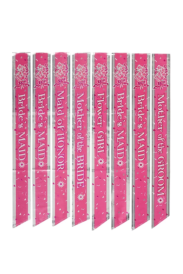 1 Maid of Honor, 4 Bridesmaids, 1 Mother of the Bride, 1 Mother of the Groom, and 1 Flower Girl