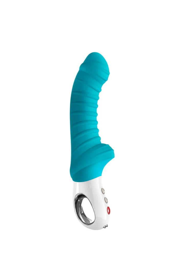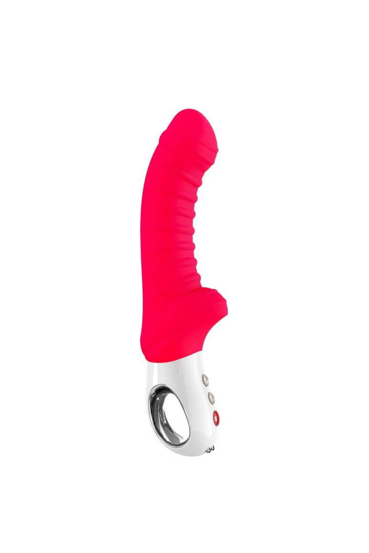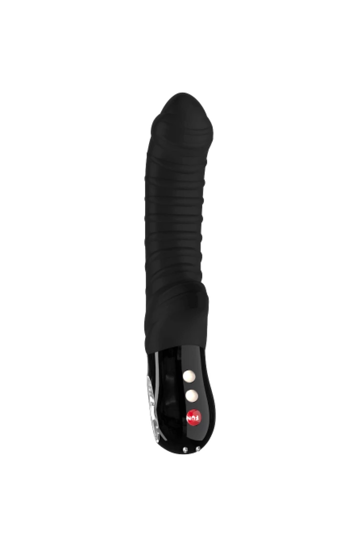 Fully rechargeable, high quality, medical grade silicone vibrator. Unique design provides a ridged sensation on every stroke combined with a deep rumbling vibration. Ring shaped handle makes it easy to hold onto.