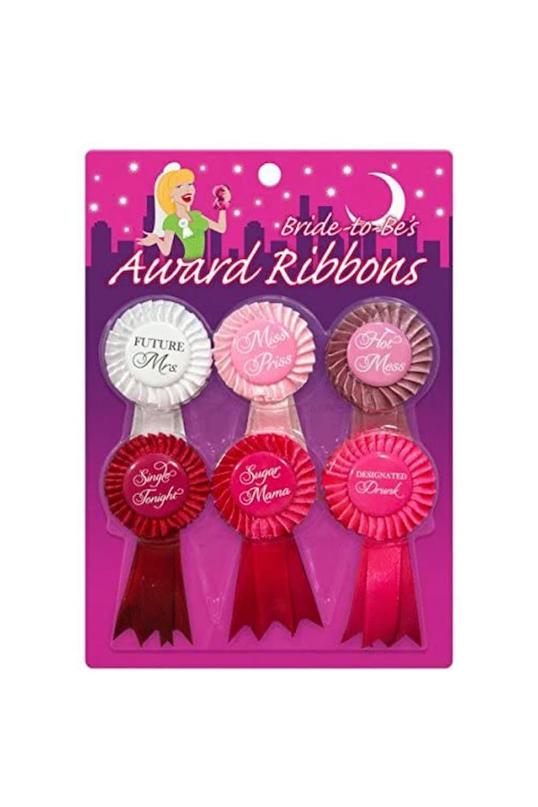 Ribbons include: Future Mrs., Miss Priss, Hot Mess, Single Tonight, Sugar Mama and Designated Drunk.