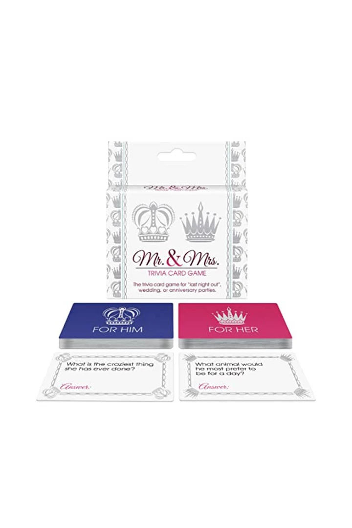 This card game has each person in the couple answer the questions about themselves in their respective deck, then the decks are switched by wedding party members and the questions asked to the other person to guess what their betrothed said!