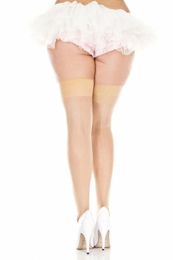 Plus size thigh high stockings, solid band with faux seam from ankle to band