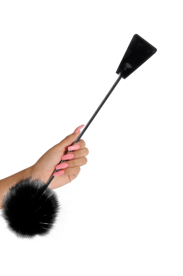 Feather tickler end to tease and patent vinyl crop end to please your partner with a smack!